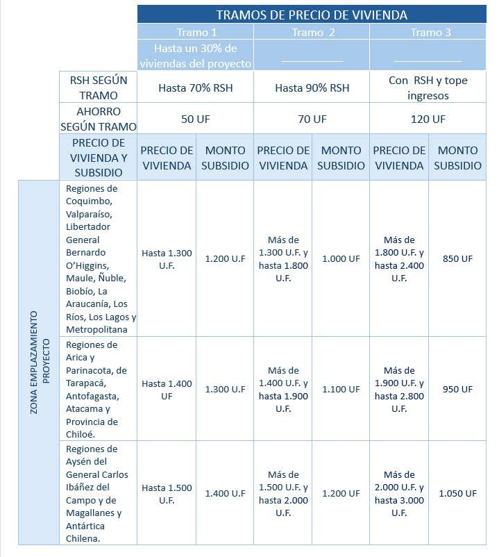 Conocer másPara postular debes considerar como mínimo dos tramos de precios de vivienda, de acuerdo con los porcentajes mínimos que se destinarán a los trabajadores de la nómina presentada según su Registro Social de Hogares (RSH):